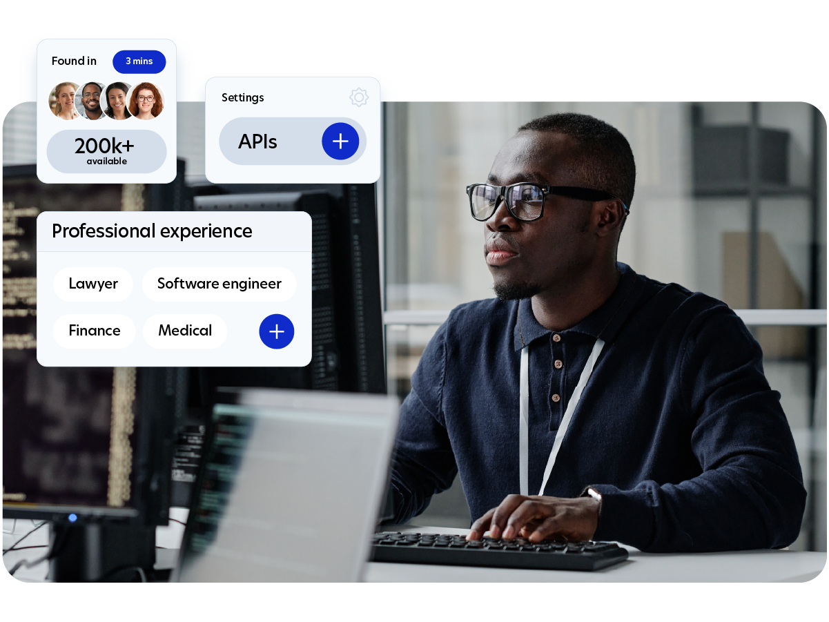 Our API‑first platform removes the friction of traditional recruiting. So you get precise, high‑quality evaluations when you need them.