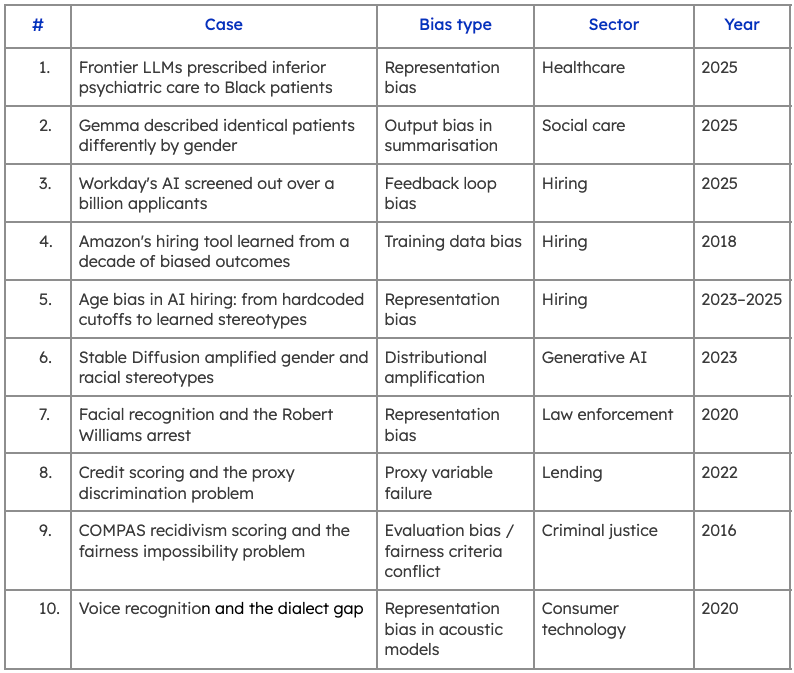 Below, we examine 10 real-world cases in detail: what happened, the technical root cause in each, and what better data collection and evaluation methodology would have caught. We've also included a framework for categorizing bias types and a methodology section on how human intelligence, when applied correctly, addresses each failure mode.