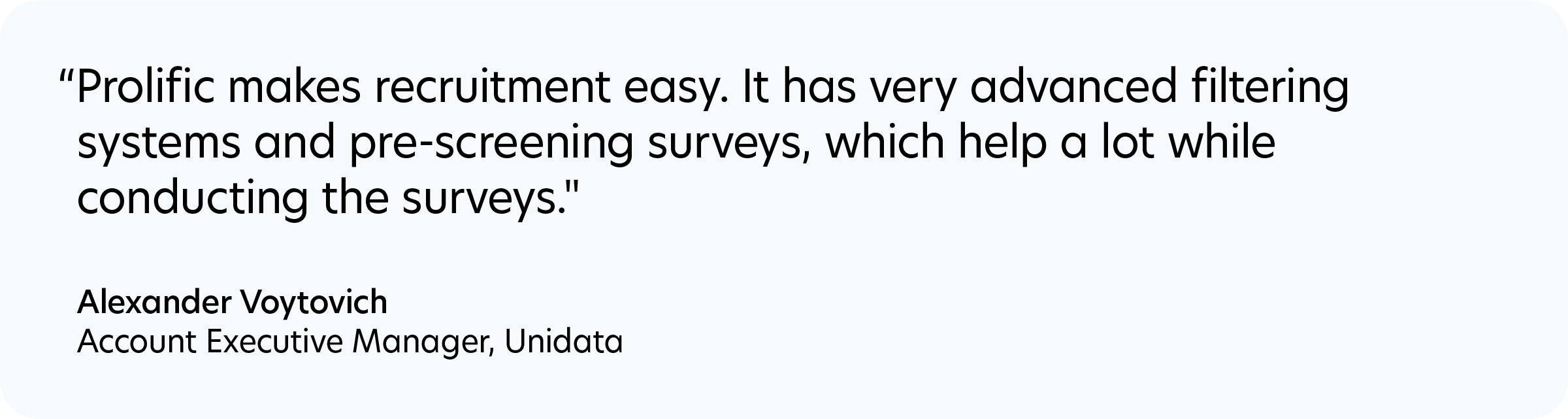 Prolific's recruitment capabilities solved Unidata's biggest pain point.