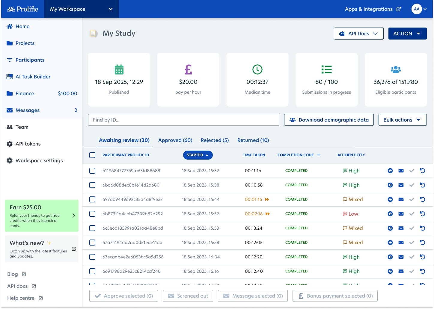 We've made Prolific more accessible with enhanced screen reader support, improved keyboard navigation, and better color contrast throughout the platform - making it easier for all researchers to manage their studies. Read our approach here.